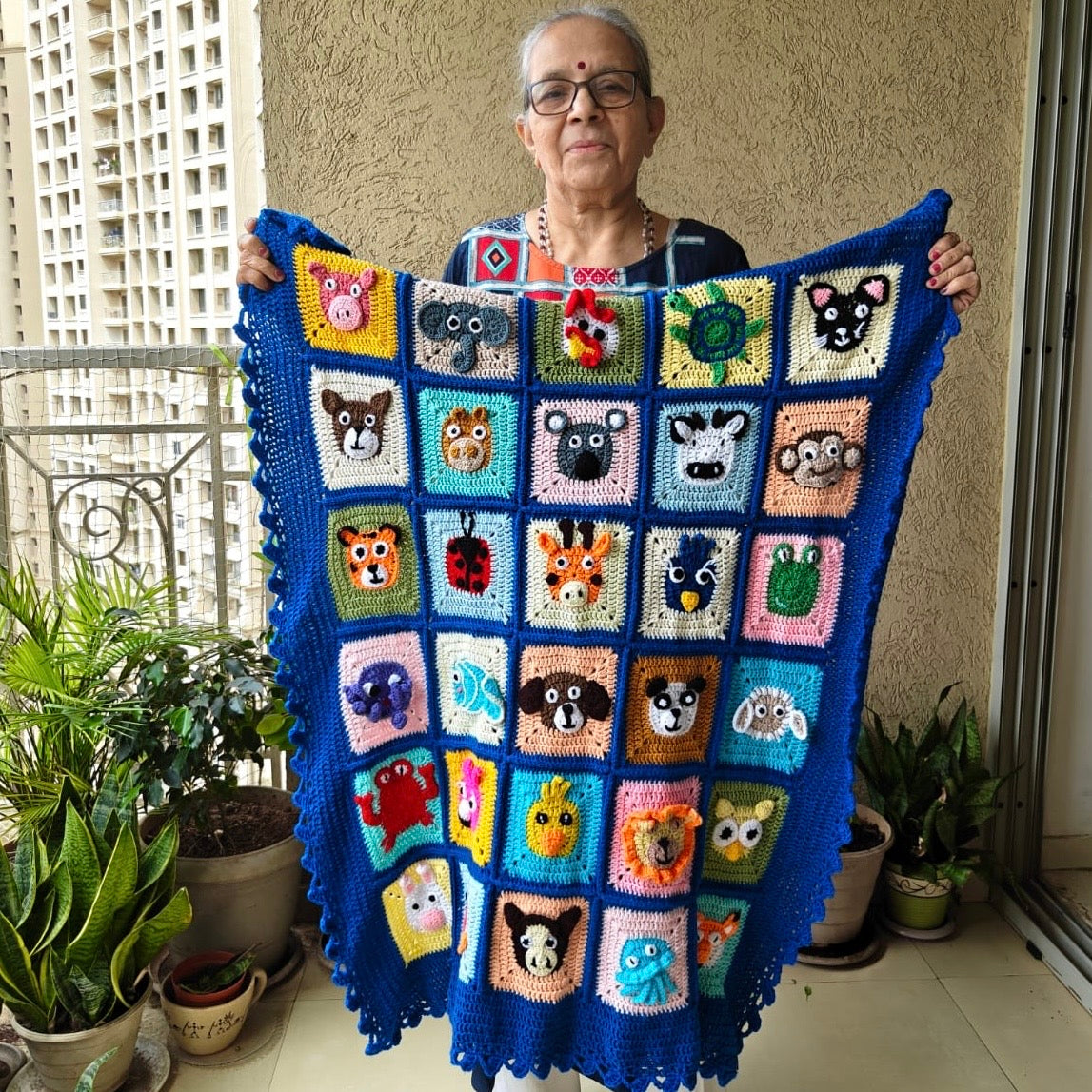 This multicolored baby blanket is a feast for the senses, with its captivating array of 30 different animals. Each motif is meticulously hand-crocheted, bringing a touch of artisanal charm to your baby’s world. Perfect for stimulating your baby's visual development while providing a soft, comforting touch, this blanket is as functional as it is fun.