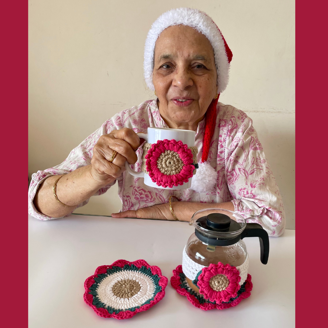 The Daisy Mug Cozy is like a gentle hug for your cup, keeping it snug and stylish.