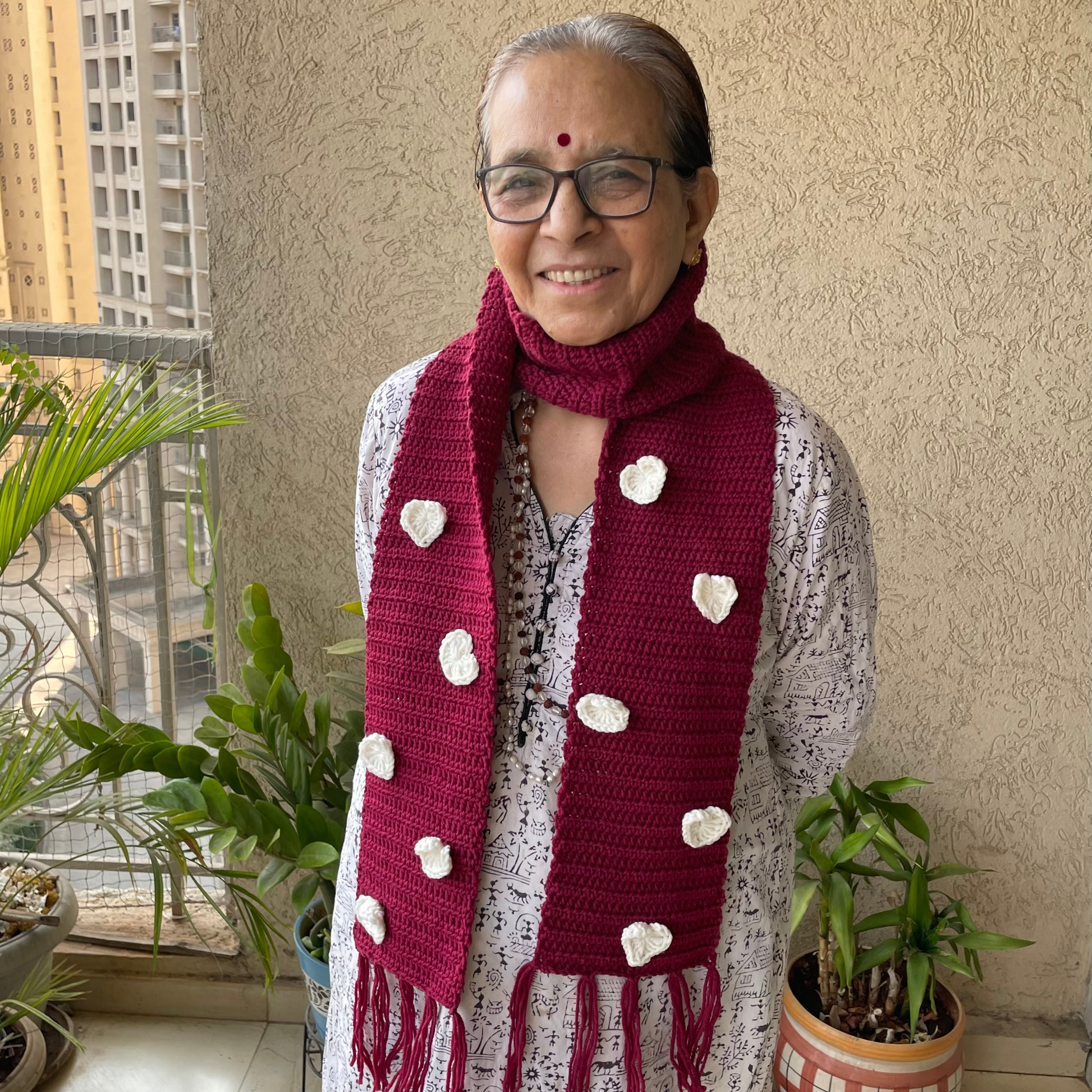 This pure wool crochet muffler isn’t just an accessory—it’s a hug you can wear. Handcrafted with care, its playful heart motifs bring a dash of romance and charm to your winter wardrobe. Whether you’re heading out for a chilly evening stroll or sipping cocoa by the fire, this muffler keeps you snug and stylish. Its soft, breathable wool ensures you stay cozy!